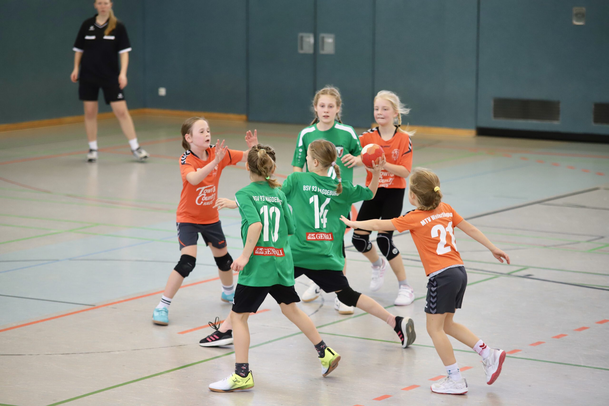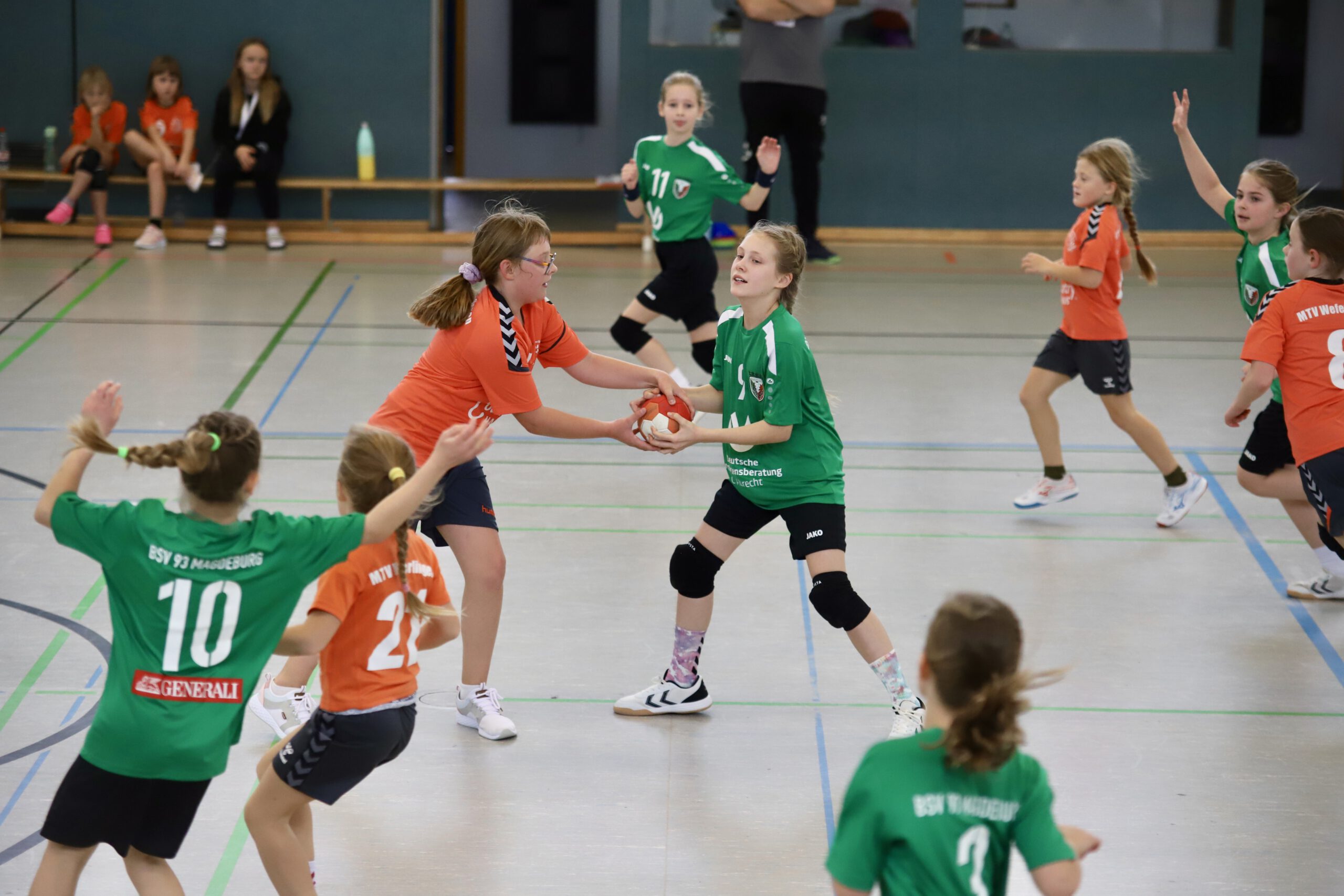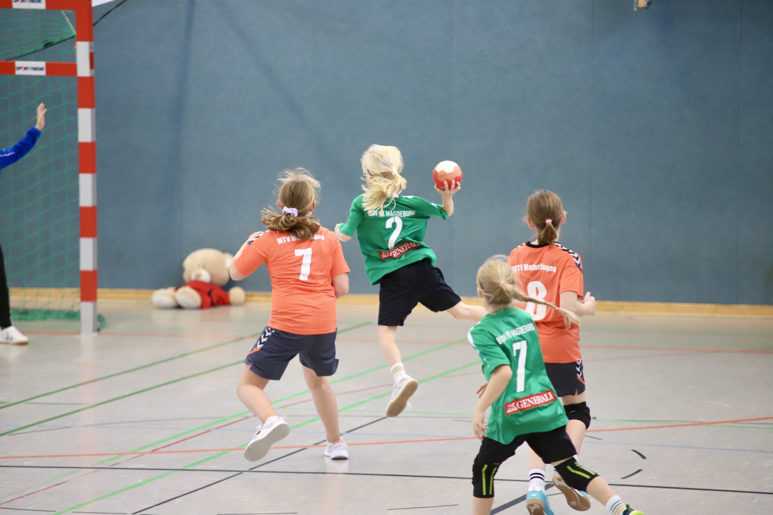 Der BSV startete sehr konzentriert und konnte über eine solide Abwehr, unter anderem von Feli Flott, die Bälle hinten gewinnen und so ihre drei Angreifer gut ins Spiel bringen. Alle Mädels spielten einen tollen Angriff, liefen sich immer wieder frei und trauten sich, das Eins gegen Eins zu suchen. Am Ende war Hannah Krause mit 8 Toren unsere erfolgreichste Werferin. Das Spiel blieb über die Stationen 2:2, 5:4 und 6:6 spannend. Mit einer besseren Chancennutzung hätte man das Spiel besser bestimmen können aber die Torhüterin auf Weferlinger Seite hat ein sehr gutes Spiel gemacht. So ging es beim 8:6 für den MTV für beide Mannschaften in die Halbzeit, um das völlig andere Spiel im Sechs gegen Sechs zu besprechen.