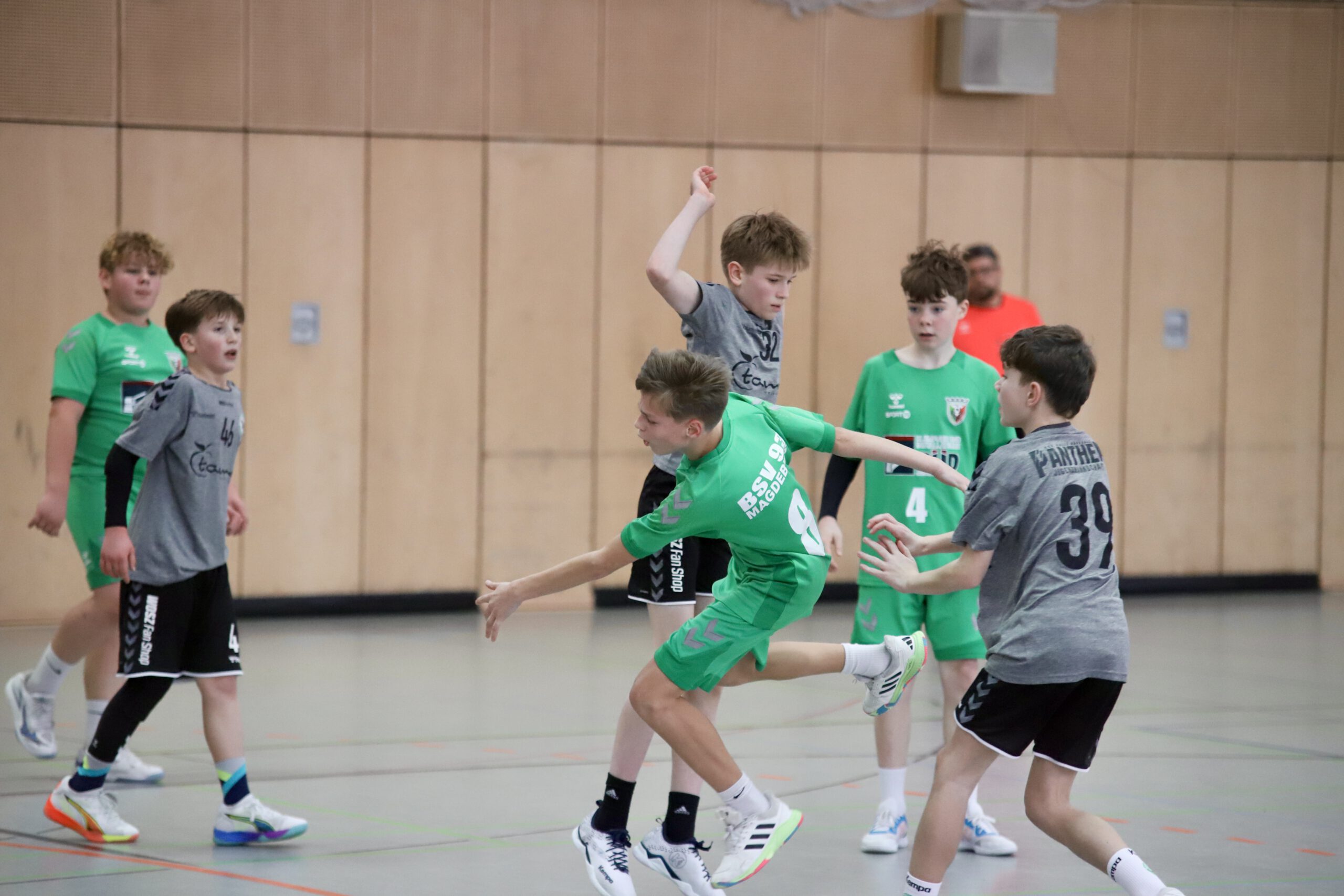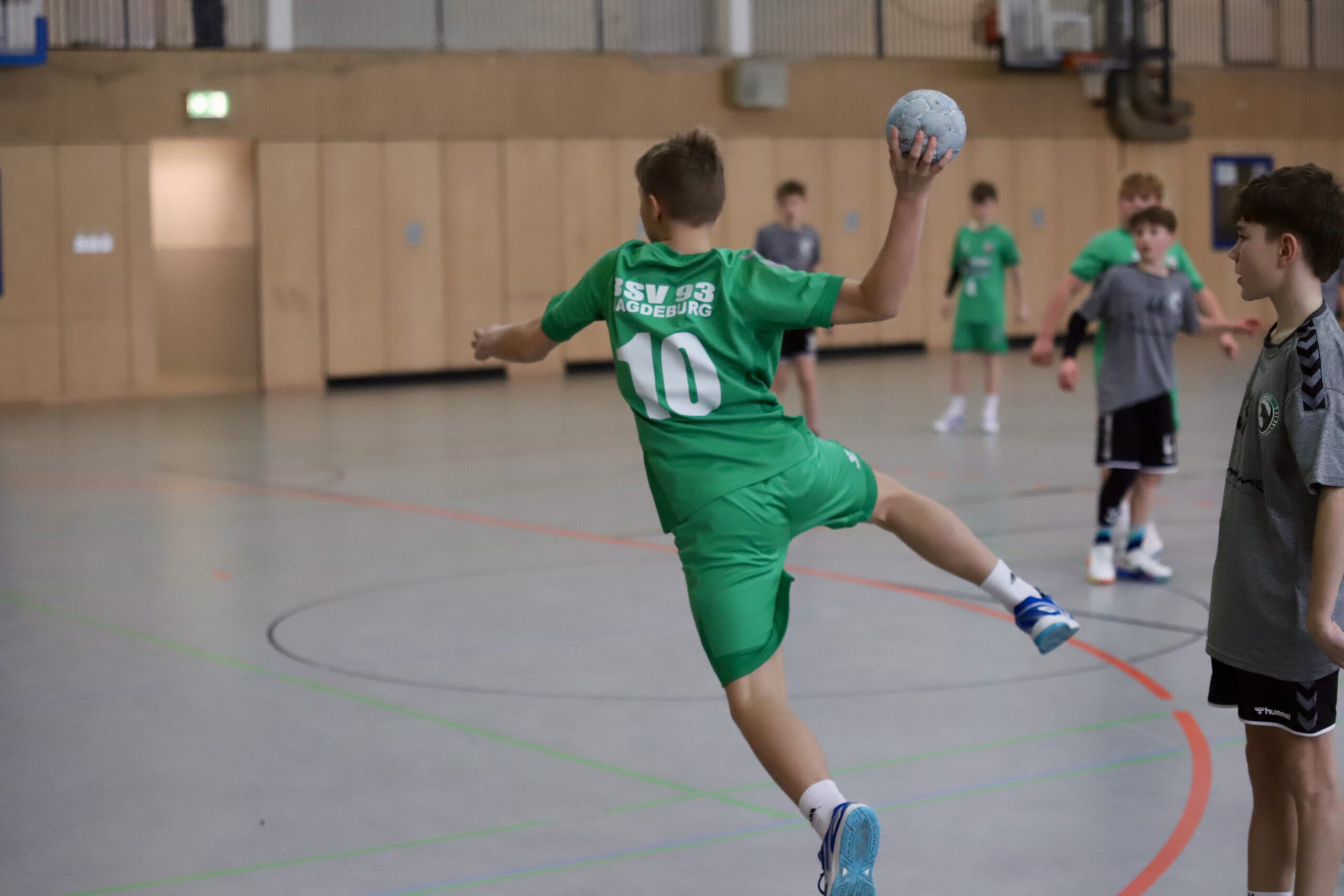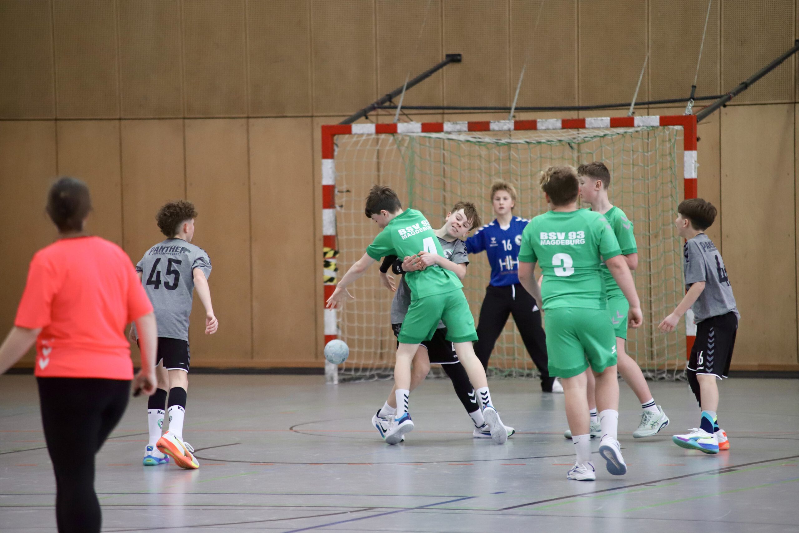 In den ersten 10 Minuten der Begegnung dominierten beide Abwehrreihen und zwangen das ein ums andere Mal den Gegner zu technischen Fehlern. Ab Minute 12 setzen die Magdeburger sich Schritt für Schritt von den Gästen ab und erspielten sich bis zum Pausenpfiff einen 5-Tore-Vorsprung. Vor allem Niclas mit 5 bzw. Diego mit 4 Toren waren maßgeblich für den 12:7 Pausenstand verantwortlich.