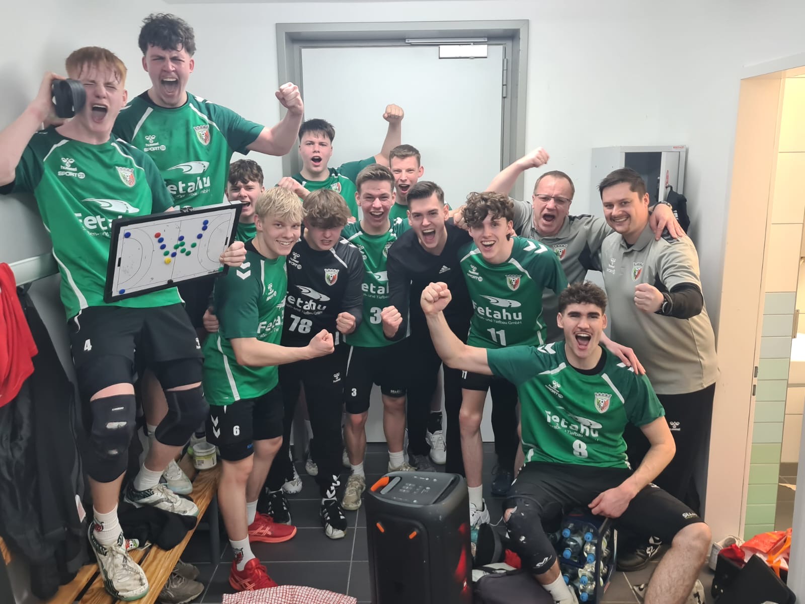 Der Start in die 2. Hälfte gehörte dem HV Wernigerode und die Olvenstedter lagen plötzlich nach 33 Minuten mit 17:18 hinten. Der BSV ließ sich jedoch nicht verunsichern und hielt an seinem Angriffskonzept fest. Die Umstellung der Abwehr in der 1. Halbzeit zeigte nun Wirkung. Die Defensive standnun deutlich besser und störte die Abläufe der Harzer bereits frühzeitig. Lennart Steinborn und Moritz Kriesch im Torkonnten nun mit einigen Paraden glänzen. So gingen die Olvenstedter Jungs mit einem 3:0 Lauf nun wieder ihrerseits nach 39 Minuten mit 22:20 in Führung. Bedingt durch einige überhastete Abschlüsse, ungenauen Pässen und kleine Verschnaufpausen für einige Spieler folgte nach dem 23:21 in der 41. Minute eine 6-minütige Torflaute des BSV. Der HV Wernigerode konnte dies jedoch nur für 2 eigene Treffer zum 23:23 Ausgleich nutzen. Nachdem die Olvenstedter 10 Minuten vor dem Ende mit 25:26 in Rückstand gerieten, nahm das Magdeburger Trainerduo seine zweite Auszeit, um den Angriff noch einmal neu einzustellen. Die Mannschaft wollte den Spielstand nicht nur verwalten, um den direkten Vergleich zu gewinnen, sondern wollte unbedingt auch das Spiel gewinnen. Lorenz Fäsche läutete von Linksaußen mit dem 26:26 nicht nur die Crunchtime ein, bei der sich zunächst kein Team absetzen konnte, sondern sorgte auch 5 Minuten vor dem Ende mit einem weiteren Treffer zum 29:28 zur erneuten Führung für den BSV. Da die Abwehr aufopferungsvoll und ballorientiert arbeitete, zwang man die Gastgeber nun immer wieder ins Zeitspiel und zu schwierigen Abschlüssen. Anton Kohlhas sorgte mit einem Doppelschlag 100 Sekunden vor dem Ende beim 31:29 für die Vorentscheidung. Felix Köhler machte dann 20 Sekunden vor Ultimo mit dem 32: 29 endgültig den Deckel drauf. Wernigerode verkürzte noch einmal zum 32:30 Endstand. Der HV Wernigerode hatte zwar mit Johann Hahne mit 19 Treffern den überragenden Spieler der Partie, am Ende setzte sich jedoch die breitere Spielanlage des BSV durch, bei dem die Wechselspieler den Stammspielern die wichtigen nötigen Pausen geben konnte. Der BSV bleibt damit verlustpunktfreier Spitzenreiter und baut den Vorsprung auf den HV Wernigerode 3 Spieltage vor dem Ende auf 4 Punkte aus.
