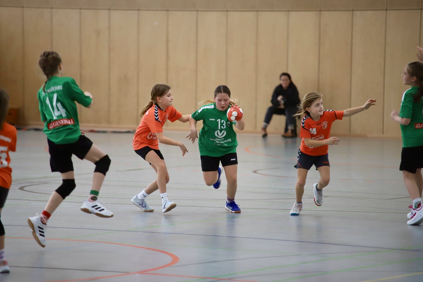 Unsere Mädels der Jahrgänge 2015-2018 treten in der Saison 2025/26 in der Bezirksoberliga wJE Staffel 2 an. Ziel für die Saison ist es, die Grundlagen des Handballs weiter auf spielerischer Art zu erlernen und zu festigen.